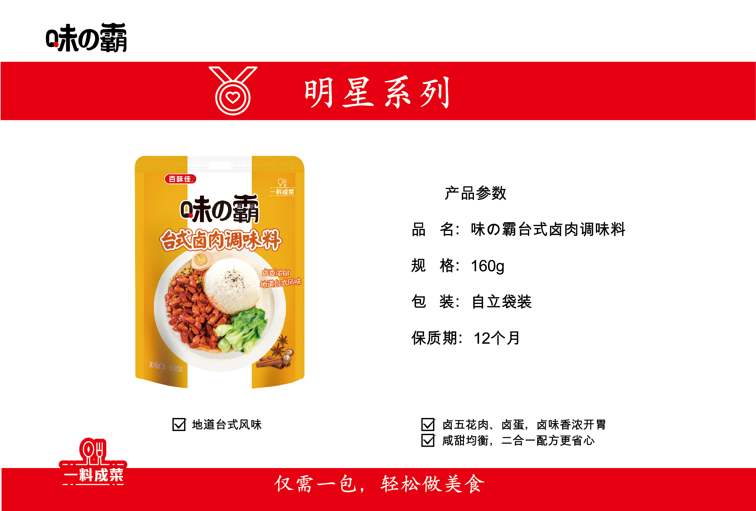 味の霸臺(tái)式鹵肉調(diào)味料 相關(guān)產(chǎn)品: 味の霸臺(tái)式鹵肉調(diào)味料 味の霸橙飲料濃漿810ml2016/07/08 冬陰功醬90g2016/07/08 牛雜醬效90g2016/07/08 味の霸番茄沙司(擠擠裝)2016/07/08 沙拉醬(擠擠裝)2016/07/08