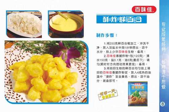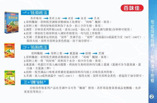 香脆秘訣(百味佳香脆炸粉使用技巧) 發布時間:2019-3-27 16:20:23 百味佳香脆炸粉為油炸食品專用,可用于炸魚片、炸雞塊、雞腿、海鮮等食物,簡單方便,炸出來的食物外酥里嫩、香脆可口、色澤金黃誘人,與百味佳面包糠配合使用尤佳。 相關閱讀: 香脆秘訣(百味佳香脆炸粉使用技巧) 七夕味覺“食”刻,用百味佳醬料點燃浪漫餐桌!2025/09/03 秋日貼膘季|用酸甜橙香與醇厚醬香,解鎖初秋味覺新體驗!2025/09/03 新品上市 百味佳焙煎芝麻口味沙拉汁,為輕食簡餐添好味!2025/09/03 情暖八一 百味佳攜手共赴一場老兵之約,以公益之心傳承紅色軍魂2025/09/03 重磅官宣,佳哥表情包全新上線啦,快來一起聊天吧!2025/09/03