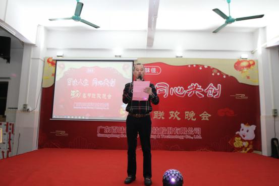 公司董事長兼總經理鐘總為晚會致辭,他表示,充滿挑戰的2018已經結束,在過去的一年里,公司全體員工團結一致,拼搏向上,一系列的大膽改革,渠道深耕,強化分銷、打擊竄貨、統一價格等策略取得顯著的成效,并圓滿完成2018年目標,新創佳績。2019年,百味佳將繼續深化改革、固化策略,以目標為導向,全員參與,同心同德,去實現我們新的價值,取得更加輝煌的業績!
