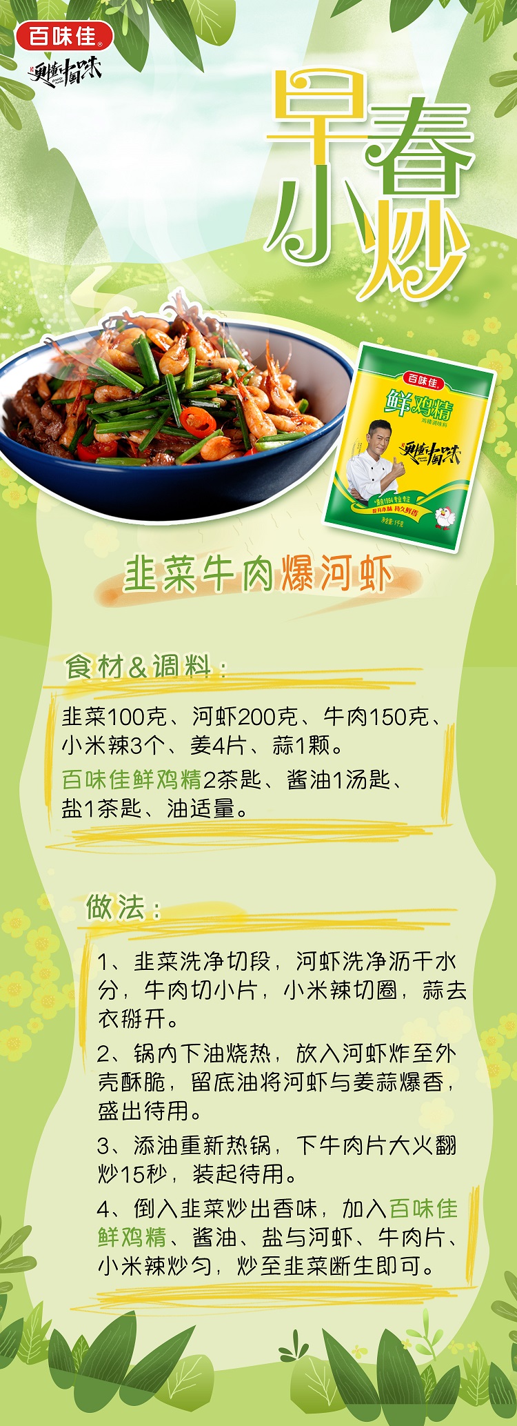 關(guān)于百味佳鮮雞精的菜式應(yīng)用——韭菜牛肉爆河蝦 發(fā)布時間:2022-3-7 11:49:30 相關(guān)閱讀: 關(guān)于百味佳鮮雞精的菜式應(yīng)用——韭菜牛肉爆河蝦 七夕味覺“食”刻,用百味佳醬料點燃浪漫餐桌!2025/09/03 秋日貼膘季|用酸甜橙香與醇厚醬香,解鎖初秋味覺新體驗!2025/09/03 新品上市 百味佳焙煎芝麻口味沙拉汁,為輕食簡餐添好味!2025/09/03 情暖八一 百味佳攜手共赴一場老兵之約,以公益之心傳承紅色軍魂2025/09/03 重磅官宣,佳哥表情包全新上線啦,快來一起聊天吧!2025/09/03